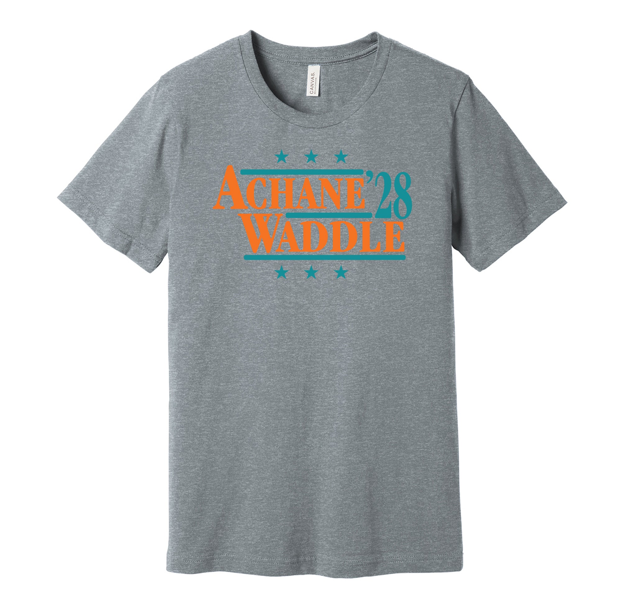 Tired of politicians who don't get anything done? De'Von Achane and Jaylen Waddle know what it takes to win not only on the gridiron but with the voters. With support from their Miami teammates, they have their eyes on the Championship as well as the White House in 2028. Show your support for your favorite superstars and football team with this slick, retro t-shirt to represent your team. You'll be the envy of the MIA with this political campaign-themed throwback style tee. Will this pair secure the electoral college vote for Florida? They have my vote, what about yours?