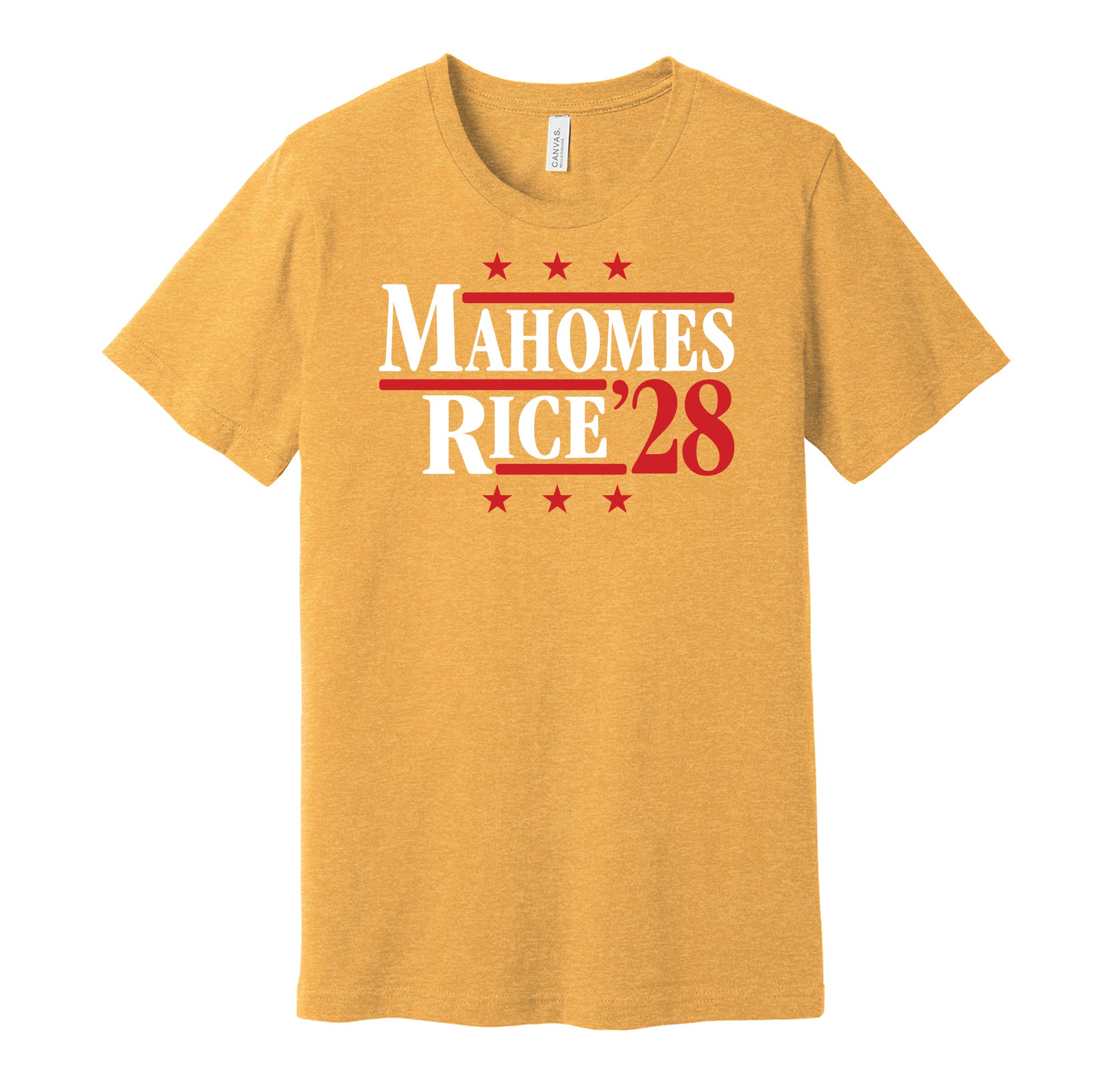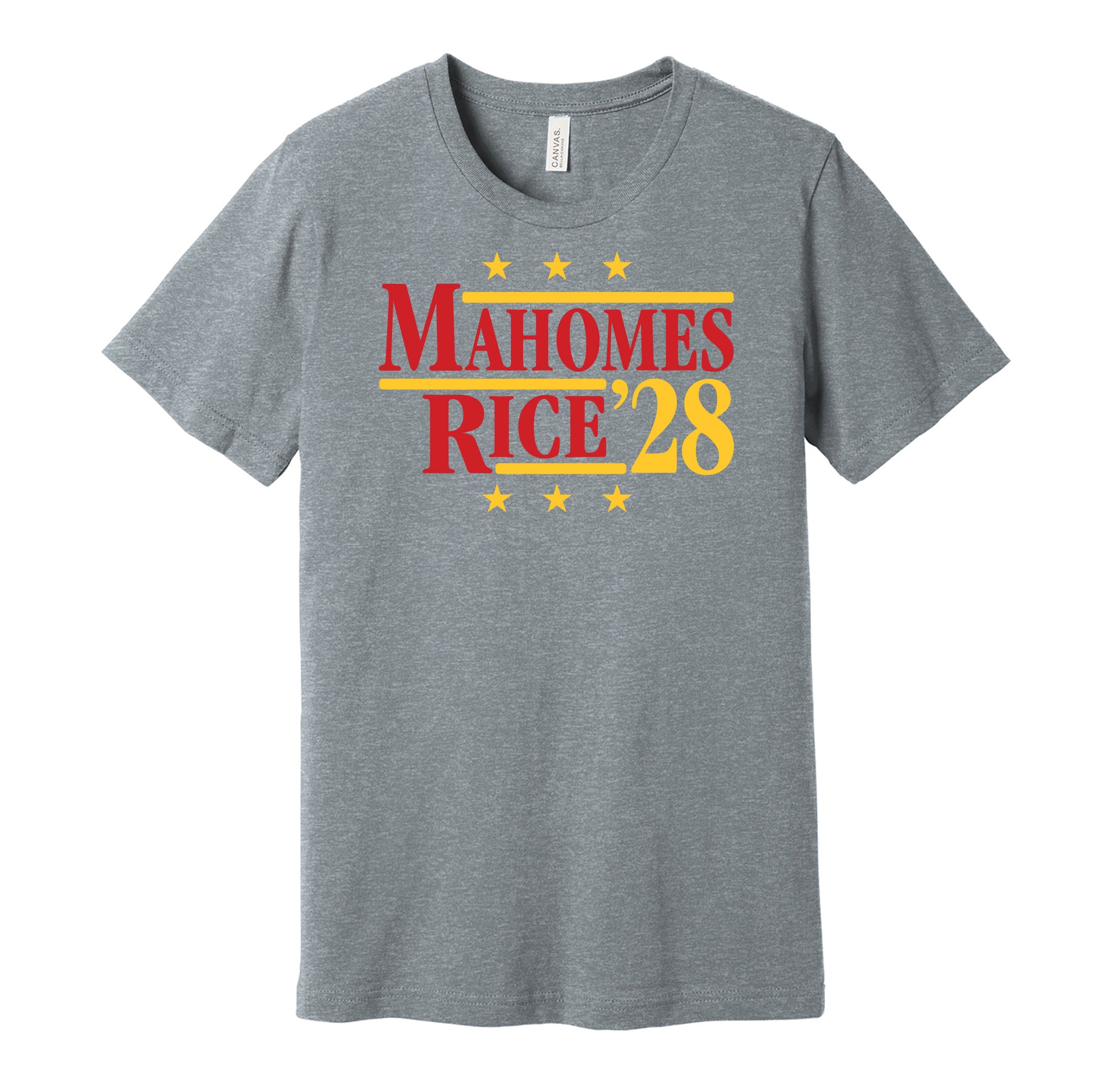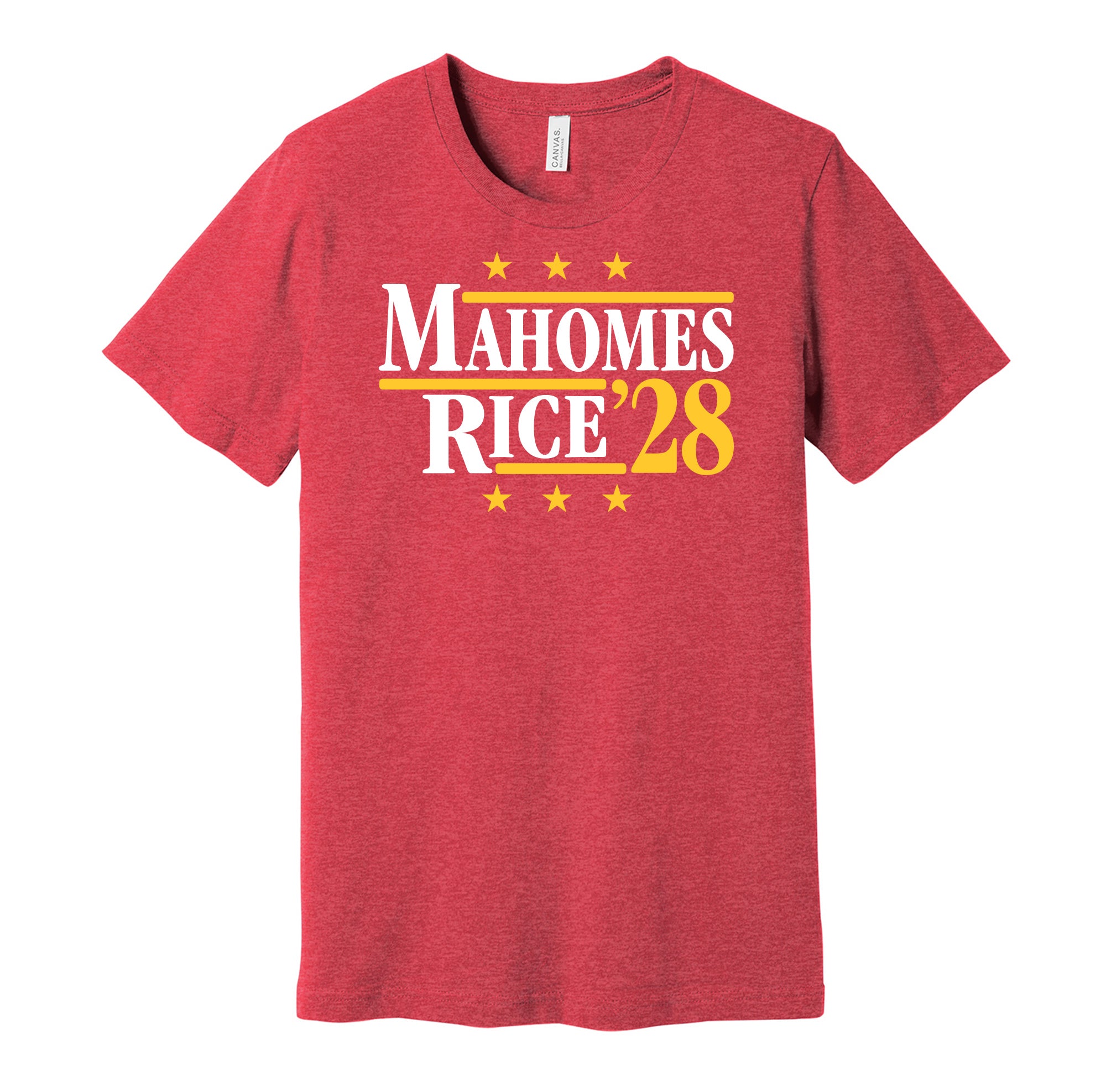 Mahomes & Rice '28 - Kansas City Football Fan T-Shirt - Political Parody Tee - Hyper than Hype Shirts