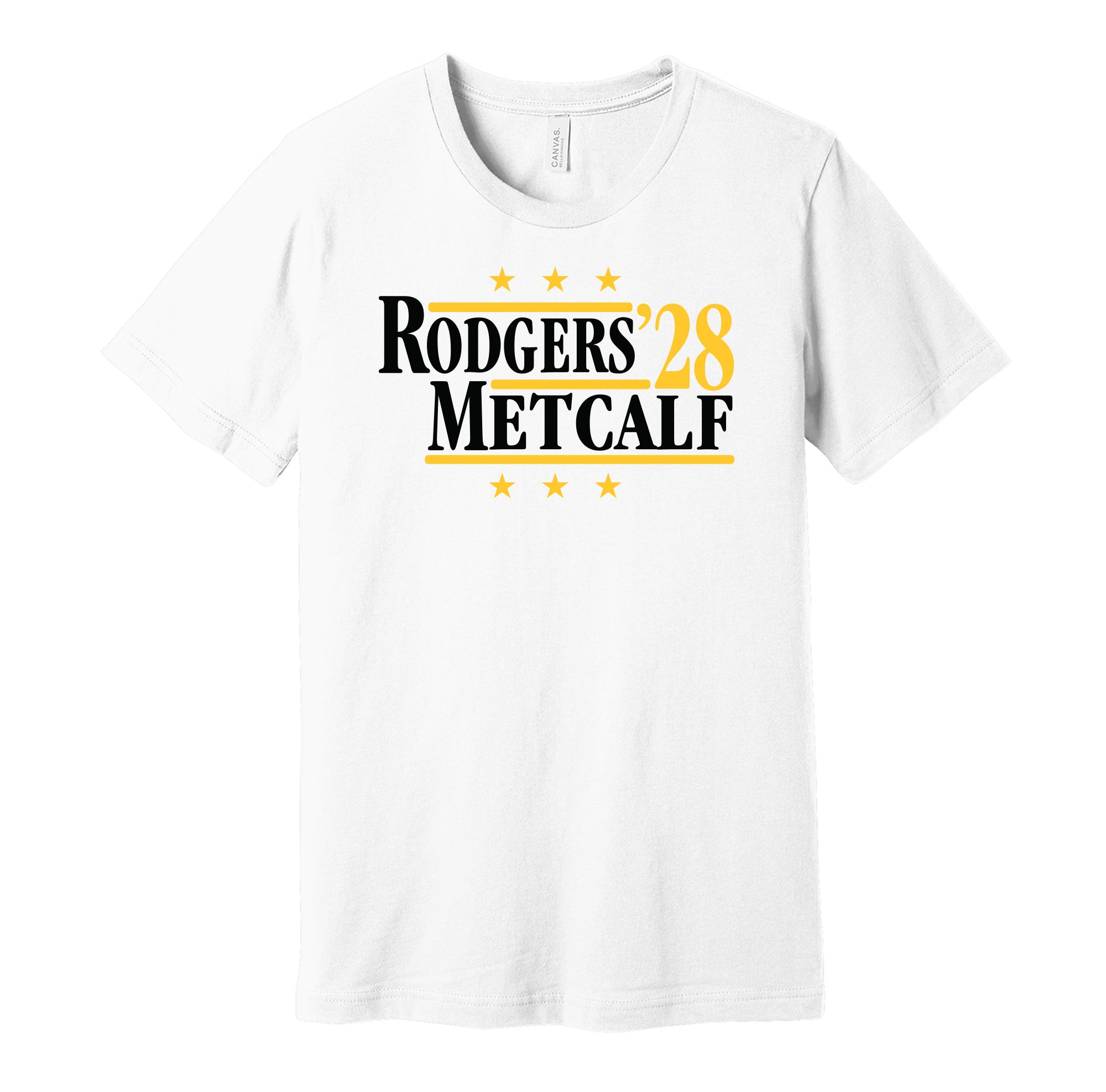 Tired of politicians who don't get anything done? Hailing fromChico, California, old man Aaron Rodgers and Oxford, Mississippi born DK Metcalf know what it takes to win not only on the gridiron but with the voters. With support from their Pittsburgh teammates, they have their eyes on the Championship as well as the White House in 2028. Show your support for your favorite superstars and football team with this slick, retro t-shirt to represent your team. You'll be the envy of the Steel City with this political campaign-themed throwback style tee. Will this pair secure the electoral college vote for Pennsylvania? They have my vote, what about yours?