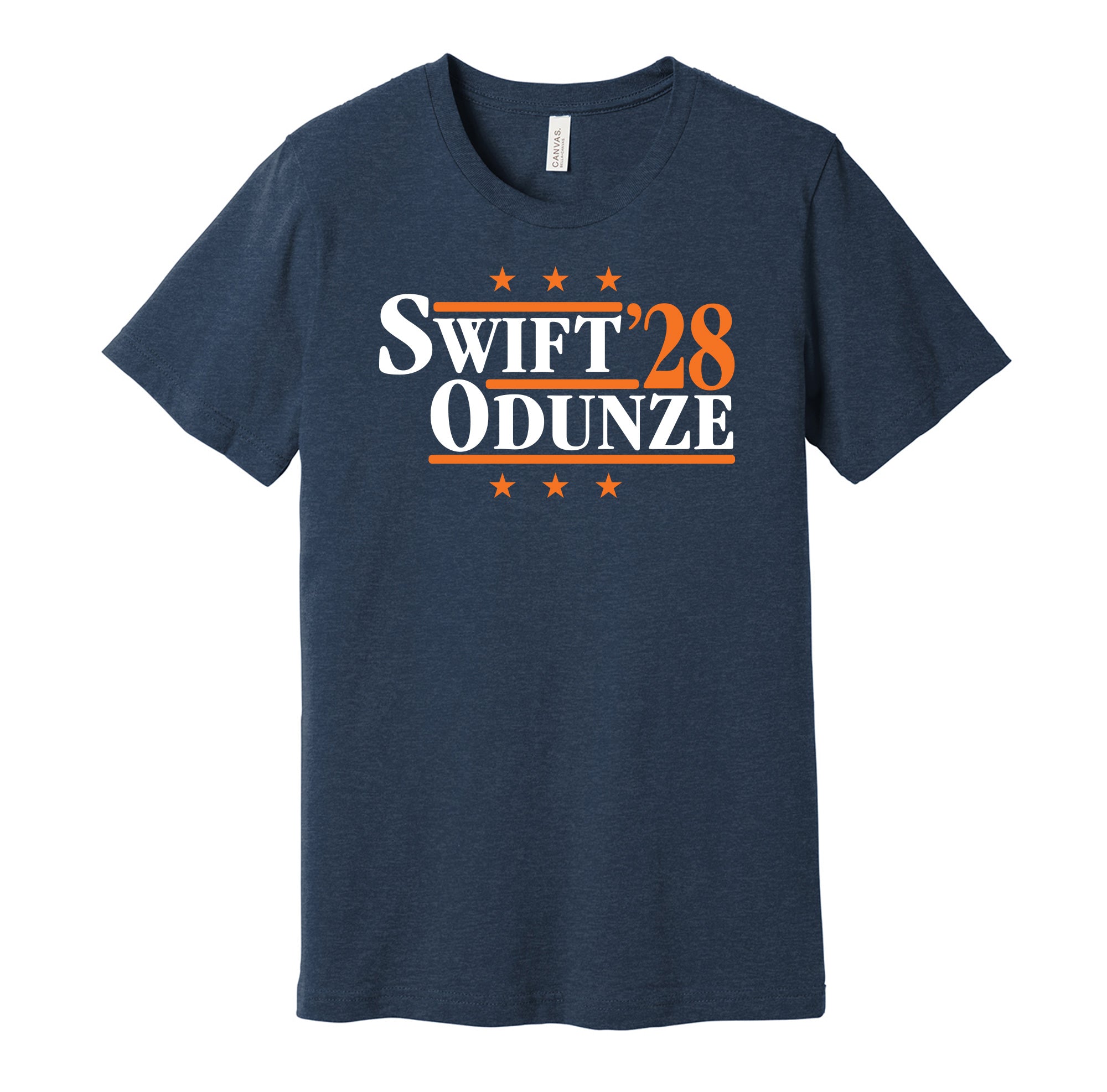 Swift & Odunze '28 - Chicago Football Fan T-Shirt - Political Parody Tee - Hyper than Hype Shirts